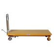 Esta mesa elevadora móvil cuenta con una plataforma muy grande de 1600x810 mm. Eleva cargas máximas de 500 kg hasta 910 mm del suelo, tanto en movimiento como de forma estática. Es un dispositivo de acero, muy robusto, equipado con una bomba hidráulica segura.